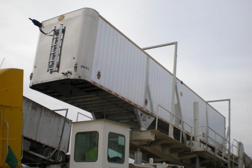 V-Slat Moving Floor - The V-slat moving floor systems offer MAC transfer trailers versatile unloading solutions while eliminating the risk of tipping or coming into contact with electrical lines. These moving floor systems are ideal when unloading sand, aggregate, rock, and asphalt, and can be done so in partial or full loads. These systems can be operated in tunnels, under bridges, and overpasses and other height restricted areas.